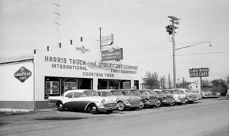 What gets my attention is the first car on the line. A stripped down Buick four-door sedan w/blackwall tires. Yet it has the optional two-color paint.
